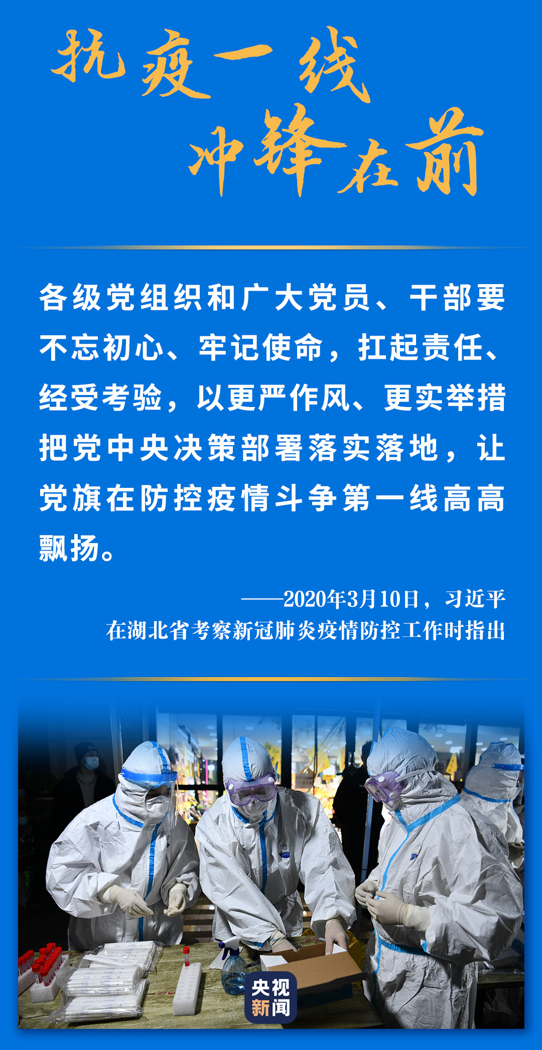 “这次抗疫斗争伊始,党中央就号召全党,让党旗在防控疫情斗争第一线高高飘扬,充分体现了中国共产党人的担当和风骨!” 2020年9月8日,在全国抗击新冠肺炎疫情表彰大会上,习近平总书记深情点赞广大共产党员不忘初心、牢记使命,充分发挥了先锋模范作用。