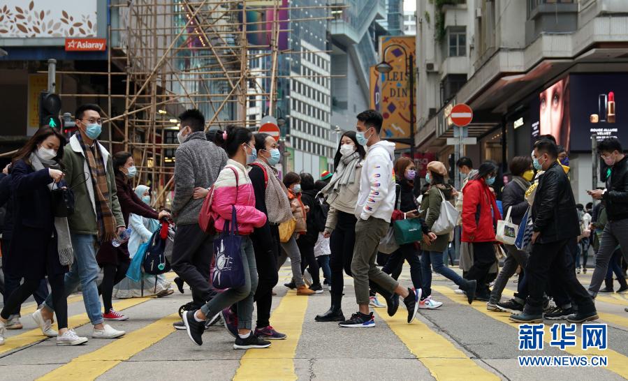 1月10日,在香港街头,市民戴口罩出行。