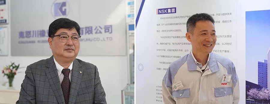 鬼怒川橡塑(芜湖)有限公司总经理山中啓嗣(左)、合肥恩斯克有限公司总经理井上真一(右)接受采访