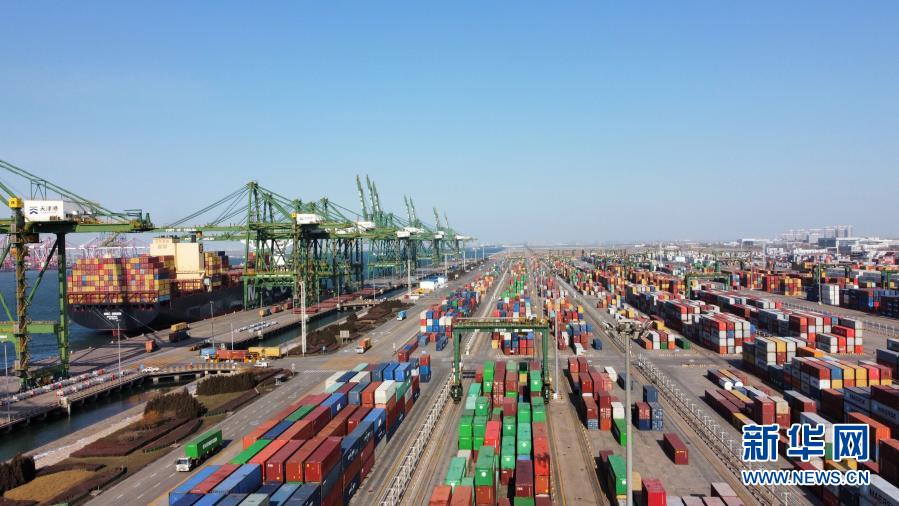 2020年,天津港年度集装箱吞吐量创历史新高,全年完成1835万标准箱,同比增长6.1%。新华社记者 赵子硕 摄