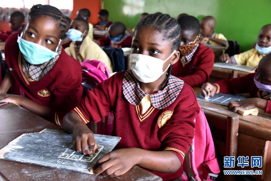 这张2020年10月5日拍摄的资料照片显示,戴口罩的学生在喀麦隆首都雅温得一所小学上课。