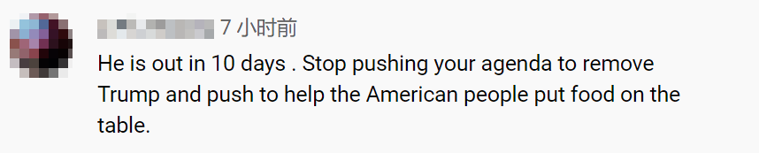特朗普就剩十天的任期了。你们别再把你们工作的重点都放在弹劾特朗普上了。能不能解决下老百姓吃饭问题。