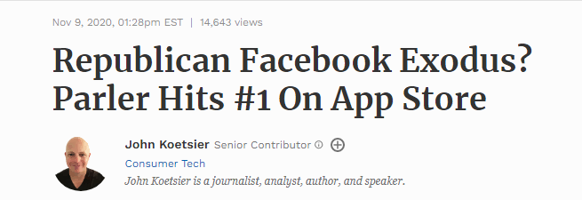 随着Facebook和Twitter越来越多地打压传播错误信息和煽动暴力的帖子,包括于上周删除了特朗普的账户,特朗普的数百万支持者纷纷转战Parler。