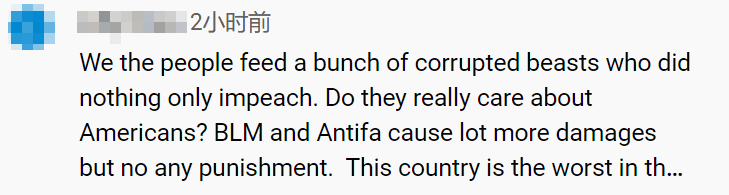 我们老百姓是养了一群贪腐无度啥也不做只知道弹劾的魔鬼么。他们(政客们)真的关心美国人民么?“黑命贵”“安提法”运动造成的伤害比益处要多,但却没有任何批评指正。这个国家简直是世界上最糟糕的国度了。