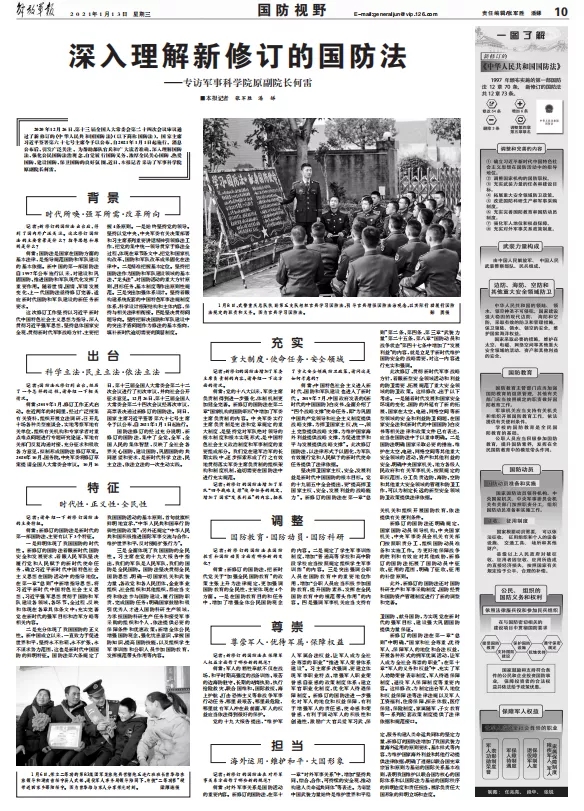 深入理解新修订的国防法 ——专访军事科学院原副院长何雷