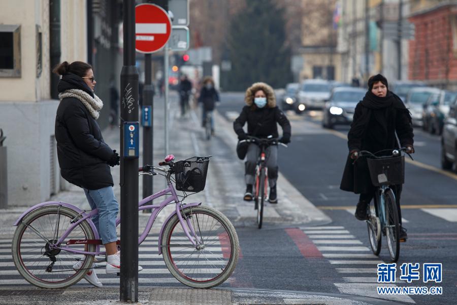 1月19日,斯洛文尼亚首都卢布尔雅那,人们骑自行车出行。据斯洛文尼亚政府19日发布的数据,该国过去24小时新增新冠确诊病例1690例,累计确诊151137例。新华社发(泽利科·斯特凡尼奇 摄)