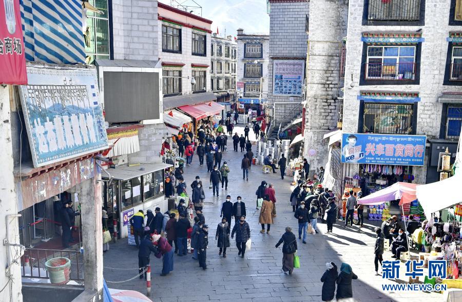 人们在拉萨市冲赛康市场逛街购物(2020年2月14日摄)。新华社记者 张汝锋 摄