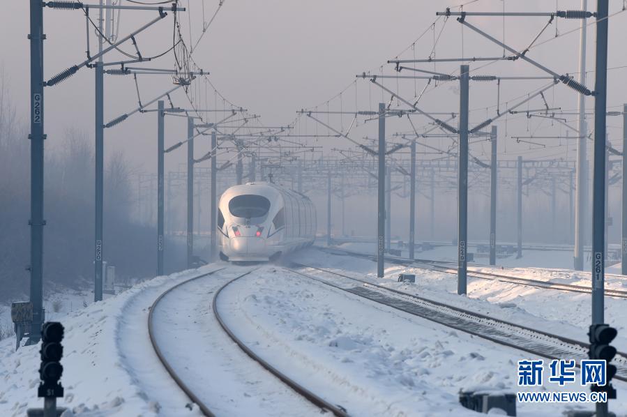 京哈高铁是我国“八纵八横”高速铁路网京哈-京港澳通道的重要组成部分,南起北京市朝阳区,终至黑龙江省哈尔滨市,全长1198公里,设计时速350公里。京哈高铁全线分三期、三段建设,其中沈阳至哈尔滨段已于2012年12月1日开通运营,沈阳至承德段已于2018年12月29日开通运营。承德至北京段于2021年1月22日正式通车,京哈高铁实现全线贯通。新华社记者 王建威 摄