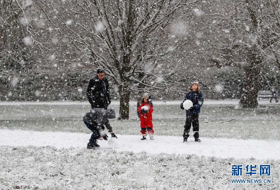 1月24日,人们在英国伦敦的大雪中享受雪趣。新华社记者 韩岩 摄