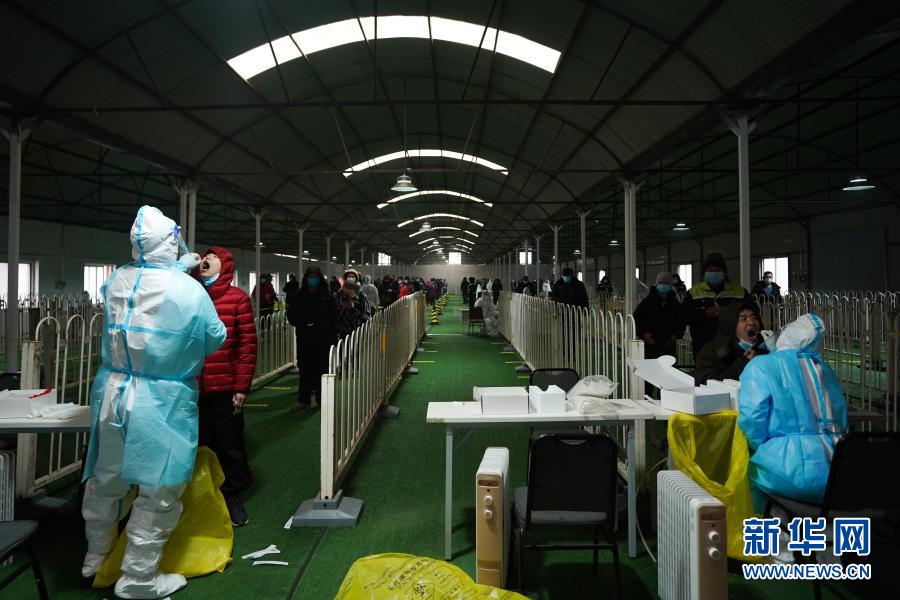 1月26日,在北京市大兴区北臧村镇一处核酸检测点,医护人员为参加核酸检测的人员采样。新华社记者 鞠焕宗 摄