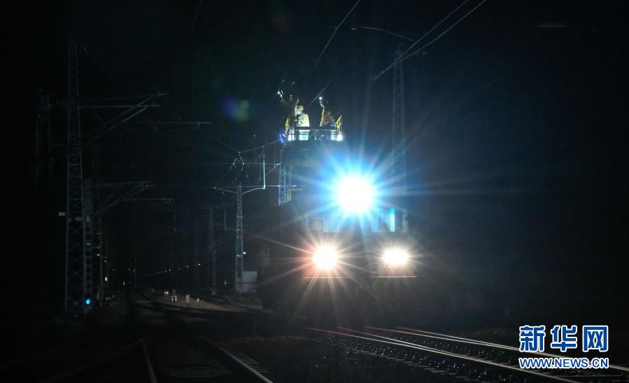 连日来,中国铁路南宁局集团有限公司南宁供电段的工人们利用子夜“天窗”时间,全面检修南广高铁、普铁接触网部件,排除各种隐患,为2021年的春运保驾护航。