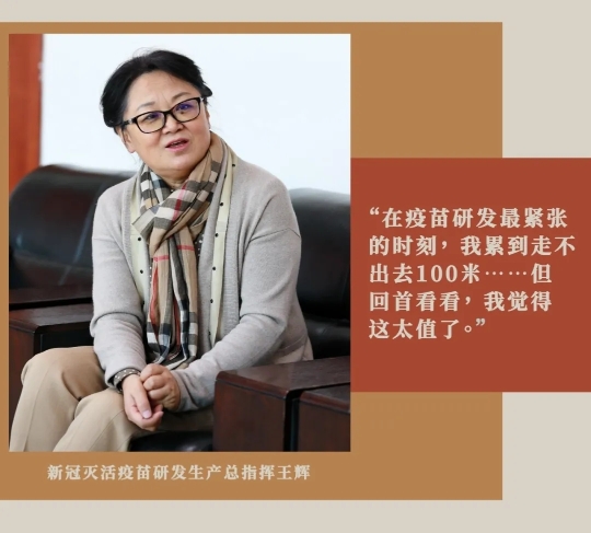 从2020年除夕到现在,作为北京生物制品研究所新冠疫苗项目总指挥,她带领新冠疫苗研发团队和新冠疫苗车间建设团队,吃住在办公室,以分秒必争的干劲,让新冠灭活疫苗在短短10个月内从无到有,让全球首个高标准新冠疫苗生产车间交付使用。用她的话讲:“这是一次从未有过的体验,这是一次生命张力的极致展现。”