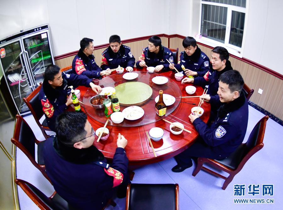 2月4日,沱沱河站派出所民警在吃饺子。