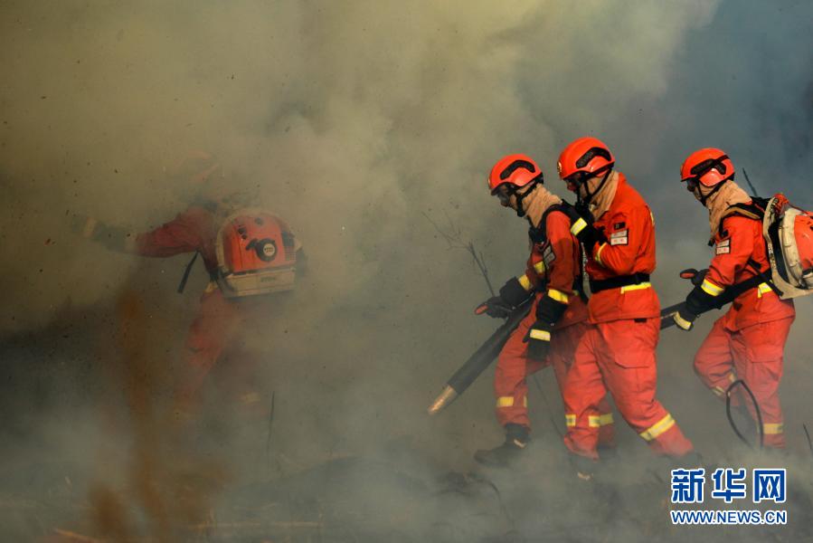 2月5日,成都市森林消防大队消防员在成都市金堂县林区进行灭火演练。进入2月份,四川省成都市进入高火险时期。5日,成都市森林草原防灭火指挥部在成都市金堂县林区举行2021年度森林草原火灾应急演练,以提高森林消防队伍的实战能力。新华社发(程雪力 摄)