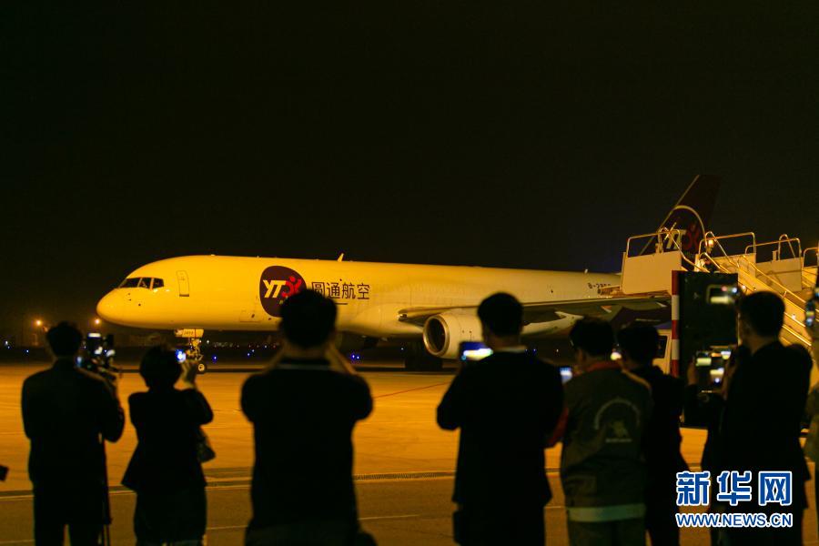 2月8日,在老挝首都万象,中国援助老挝的新冠疫苗运抵机场。中国政府援助老挝的新冠疫苗8日凌晨由中国圆通速递货运包机运抵万象,老挝卫生部长本贡和中国驻老挝大使姜再冬到机场迎接。新华社发(凯乔摄)