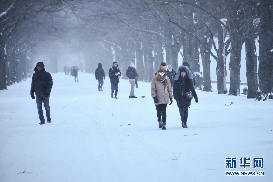 2月7日,在德国汉诺威,人们在雪地上行走。新华社发(亨宁·舍芬摄)