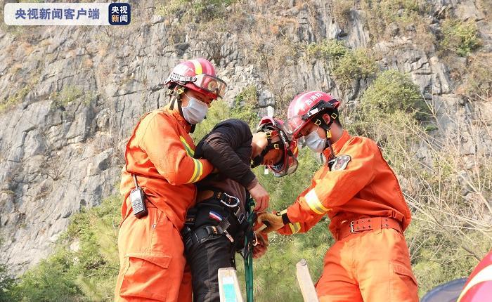2月7日8时左右,消防救援人员开始登山,开展救援活动。9时,消防救援人员与被困人员会合;14时24分,消防救援人员在山上制作好锚点,并搭建绳索系统,利用绳索将男子转移至山下。16时20分,经过近两个小时的营救,被困男子终于被救出。