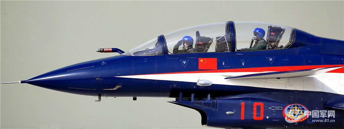 2019年10月18日,中国空军八一飞行表演队参加庆祝人民空军成立70周年航空开放活动,飞行表演结束返航着陆滑行中,摄影师使用100-400mm远摄变焦镜头拍摄歼-10飞行员向观众敬礼的画面,通过特写画面,传递人民空军爱人民的亲切形象。(周闽 摄)
