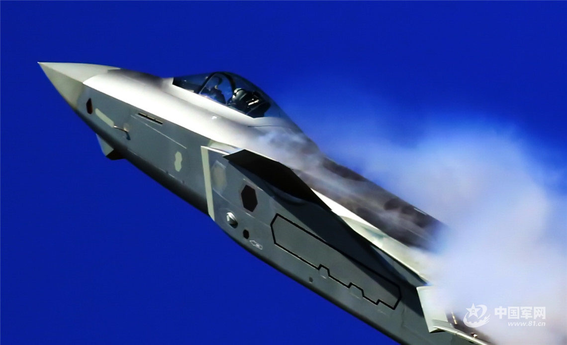 2018年11月,摄影师使用600mm超远摄镜头拍摄,对图片进行后期二次创作剪裁,表现歼-20飞机前机身诸部位的细节之美。(周闽 摄)