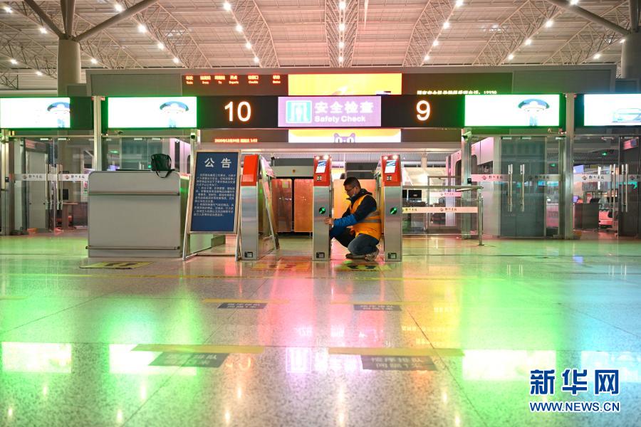 在郑州东站,中国铁路郑州局集团有限公司科学技术研究所设备维保员赵牧童在维护高铁站设备(2020年12月30日摄)。新华社发
