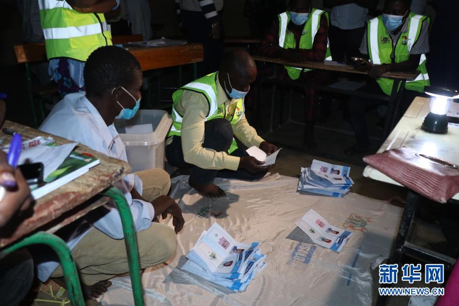 2月21日,工作人员在尼日尔尼亚美的一处投票站计票。新华社发