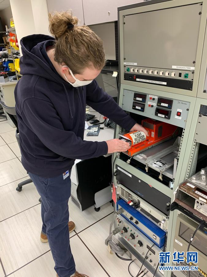 2月22日,工程师从出现发动机故障的美国联合航空公司波音777-200客机的飞行数据记录器下载数据。美国国家运输安全委员会主席罗伯特·萨姆沃特22日说,初步评估显示,此前出现发动机故障的美国联合航空公司波音777-200客机的发动机风扇叶片受损与金属疲劳有关。新华社发(美国国家运输安全委员会供图)