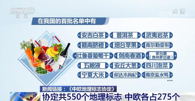 央视网消息:《中欧地理标志协定》于3月1日起生效,从此中国和欧盟国家的几百种地方土特产品就相当于有了“出国护照”。那么什么是《中欧地理标志协定》,都有哪些产品纳入到该协定中?被纳入该协定又意味着什么?