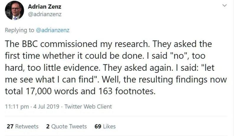 原来,本名Adrian Zenz、挂着学者名头的“郑国恩”,被西方媒体称作是“西方研究西藏以及新疆少数民族的权威专家”,实际上却是毕业于神学院的神秘人物。