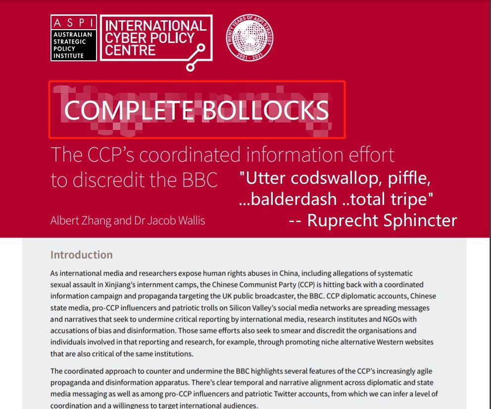 文章内容不值一驳,因为文中所谓智库及披着学者外衣出现的研究者,正是被广泛揭露过的澳大利亚反华智库ASPI,他们和BBC一样,为多家西方媒体的对华虚假信息战出谋划策。这家智库长期接受美国和澳大利亚政府部门及军方资助,与BBC是一丘之貉。