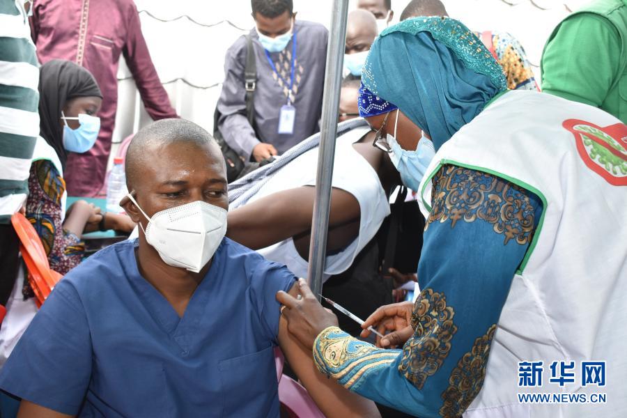 几内亚5日在首都科纳克里启动中国援助新冠疫苗的接种工作。新华社发