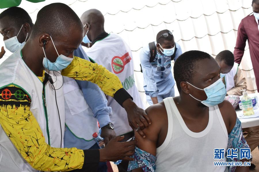 3月5日,在几内亚首都科纳克里,一名男子接种中国新冠疫苗。