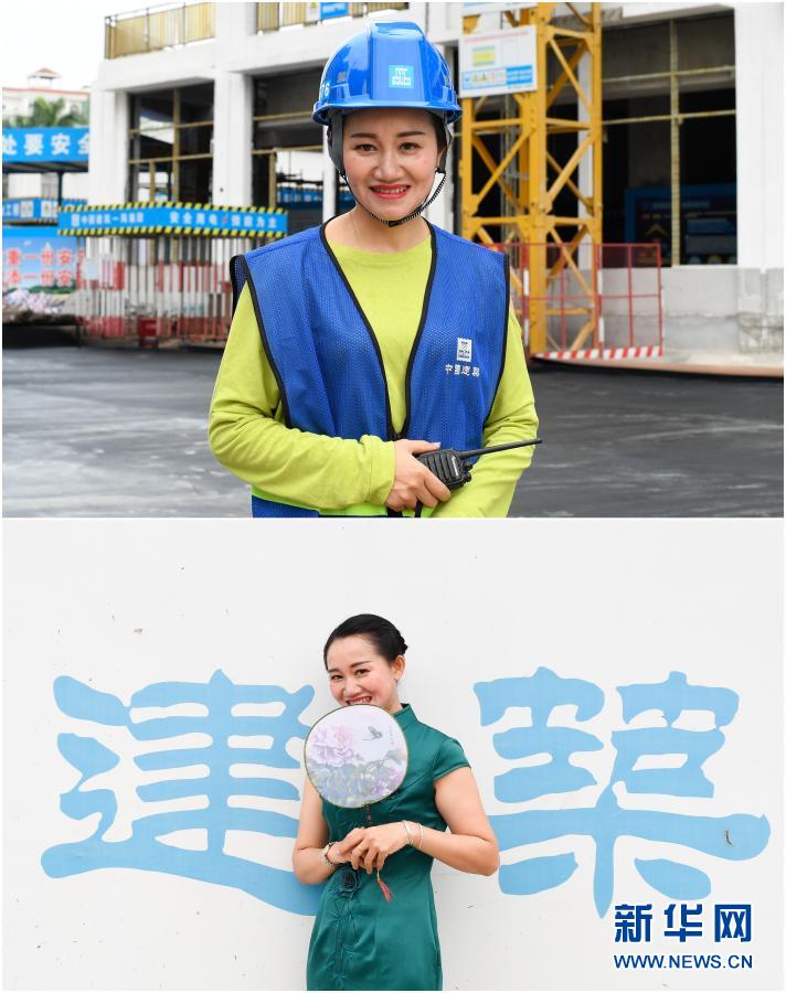 这是一张拼版照片:上图为信号工吴月美在自己的工作岗位拍照留念;下图为吴月美身着旗袍拍照留念(3月6日摄)。新华社记者 杨冠宇 摄