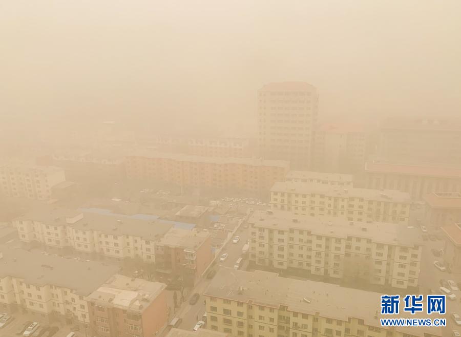 3月15日,呼和浩特市笼罩在沙尘暴中(手机拍摄)。当日,呼和浩特市遭遇沙尘暴天气。新华社记者 连振 摄