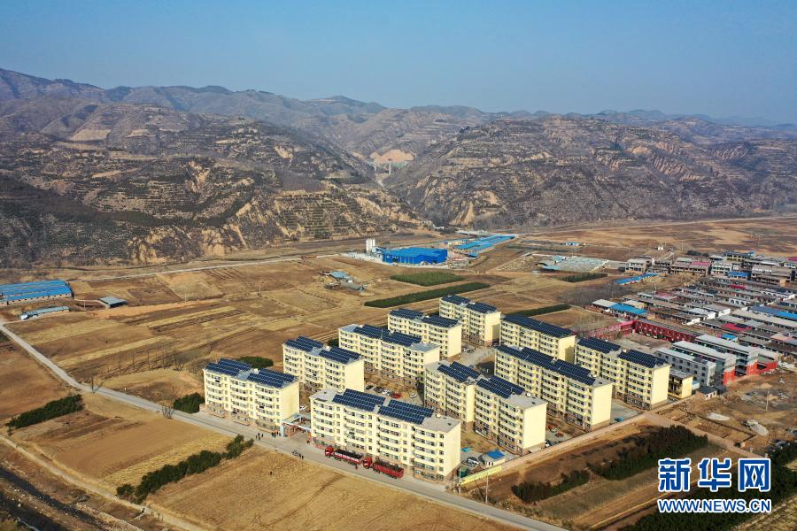 方山县峪口镇易地扶贫搬迁安置小区(3月9日摄,无人机照片)。新华社记者 詹彦 摄