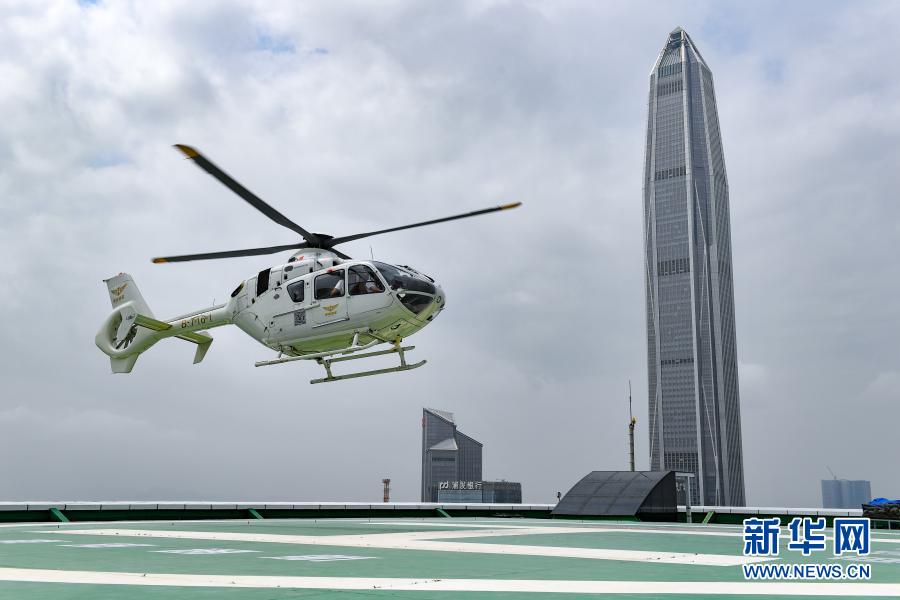 3月18日,直升机抵达深圳市中心的大中华直升机场。新华社记者 毛思倩 摄