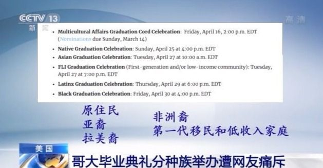 分种族举办?哥大毕业典礼遭网友痛斥