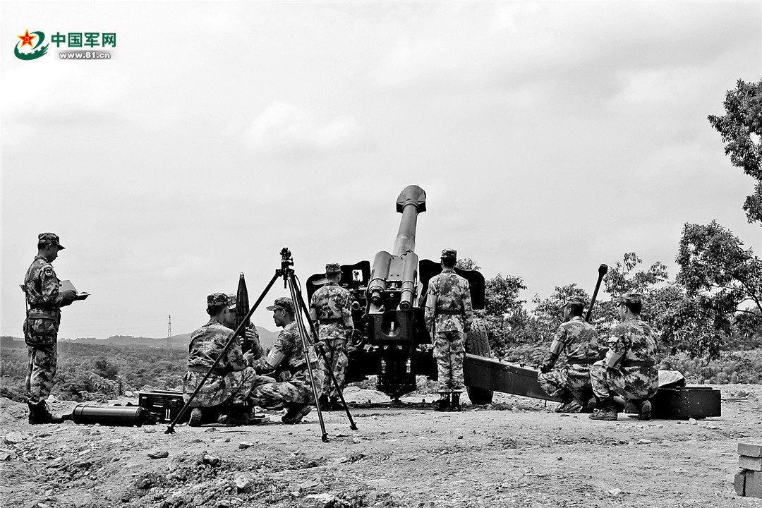 战炮分队在进行间瞄实弹射击教练示范。张增博摄