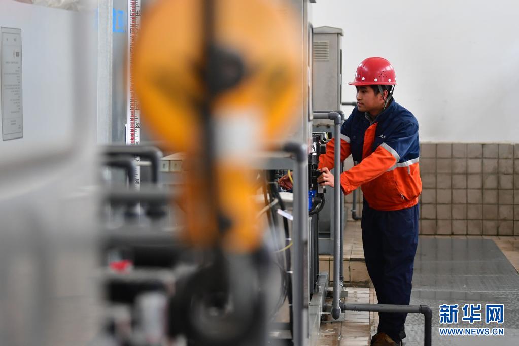 4月8日,兰州新区化工园区污水处理厂工作人员在车间内检查调试设备。