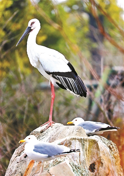 东方白鹳属大型涉禽,是国家一级保护动物,被国际鸟类保护理事会确定为世界一级濒危物种。东方白鹳对环境要求苛刻,一般在我国东北一些地方繁殖,在长江下游及以南地区越冬,野生种群数量稀少,被誉为“鸟界国宝”。