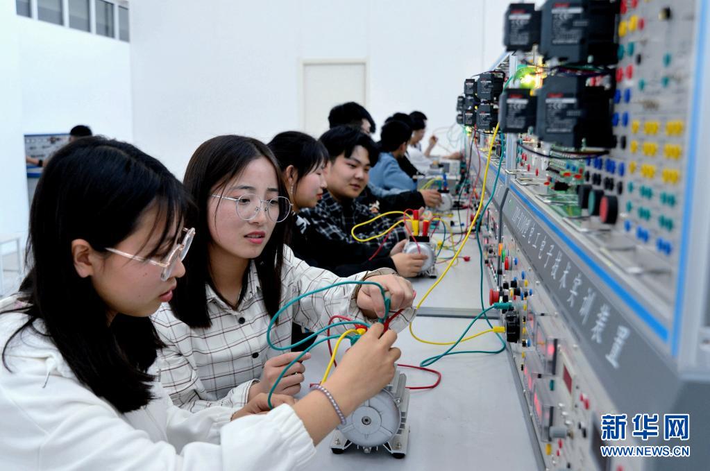 4月19日,邯郸职教城学生进行电工电子实践操作。