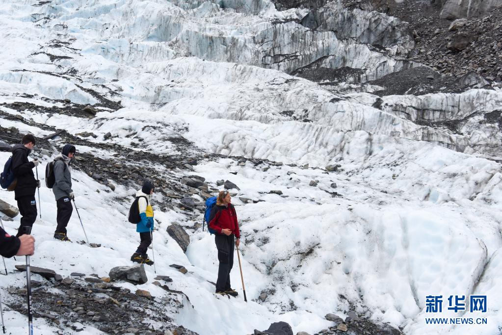 4月19日,人们在新西兰南岛西海岸福克斯冰川上徒步。新华社记者 郭磊 摄