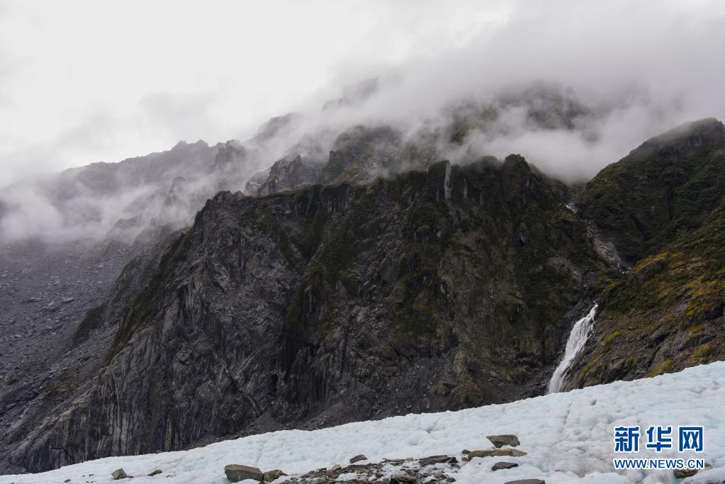 这是4月19日在新西兰南岛西海岸福克斯冰川上拍摄的景象。新华社记者 郭磊 摄