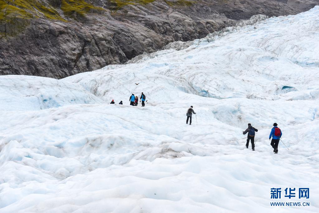 4月19日,人们在新西兰南岛西海岸福克斯冰川上徒步。新华社记者 郭磊 摄