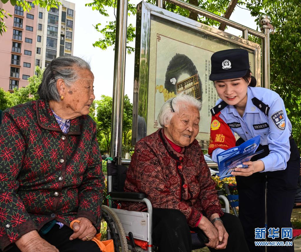 5月2日,赵轶君在合肥市淝南家园社区向居民宣教防网络诈骗相关知识。赵轶君于2019年参加工作,现为合肥南站派出所民警。作为基层民警的她,在假期走进社区开展反电信诈骗、反网络诈骗安全宣传。