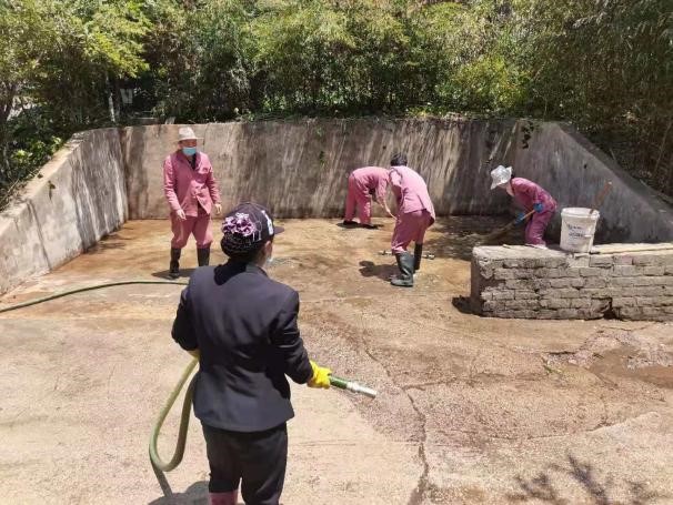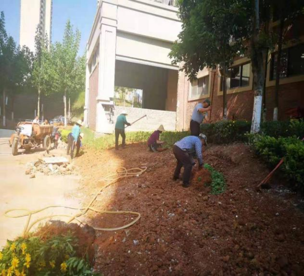 呈贡区政府分管领导先后2次到现场调研、指导、督促整改工作,要求各单位协力配合,快速、有效完成整改工作。一是对垃圾房内外排水沟进行疏通,铺设水泥预制水槽150米,改三级过滤池1个,通过Φ200PEP管引流入污水管网,解决垃圾渗滤液排放问题。每天冲洗垃圾房3次,避免污水积存和蚊蝇滋生。二是责成物业另设垃圾房出入口,新装垃圾房卷帘门1道,外围通透式大门1道,设置通透式围栏45米,在垃圾房门东北侧用小砖砌起2.5米高的围墙1道,避免垃圾外露。三是将2.5米高的墙面搓沙粉平用作宣传栏,张贴爱国卫生“7个专项行动”相关宣传内容。四是现浇硬化砼路面300平方米,方便垃圾车辆进出、装运垃圾。五是对原垃圾房门两侧进行路面清挖外运,回填红土增绿补绿120平方米,栽种黄冠菊1500余株,目前已管养成活。并对垃圾房周边破损墙砖、路面、管道进行修复。有力提升了小区内外环境。