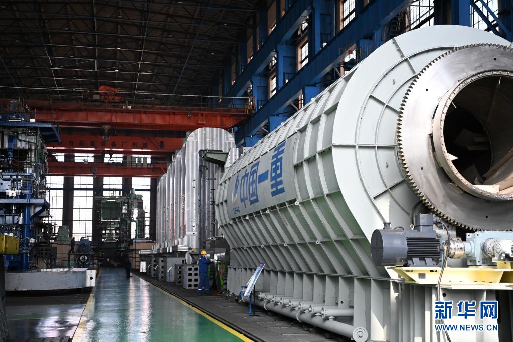 在位于黑龙江省齐齐哈尔市的中国一重生产车间,工人在生产作业(4月20日摄)。新华社记者 王建威 摄