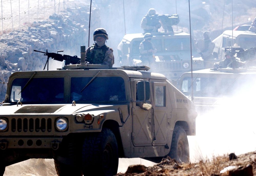 2003年12月16日,驻阿富汗的美军在阿富汗中部的瓦尔达克省巡逻。阿富汗战争是美国历史上持续时间最长的海外战争。(新华社记者王雷摄)