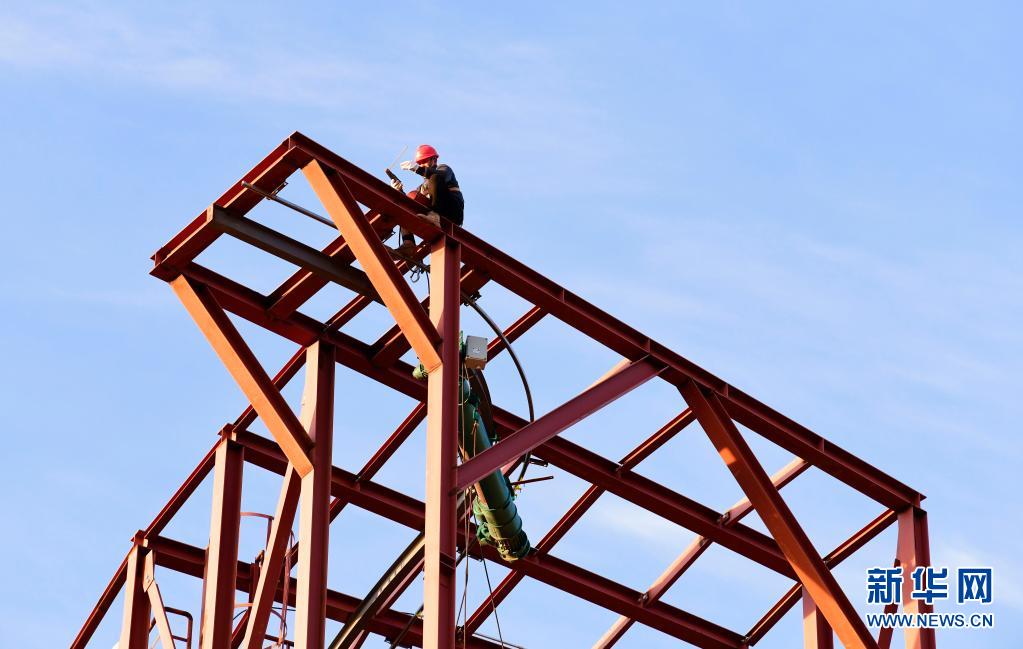 5月17日,建设者在内蒙古雅海能源开发有限公司60万吨液化天然气项目工地作业。