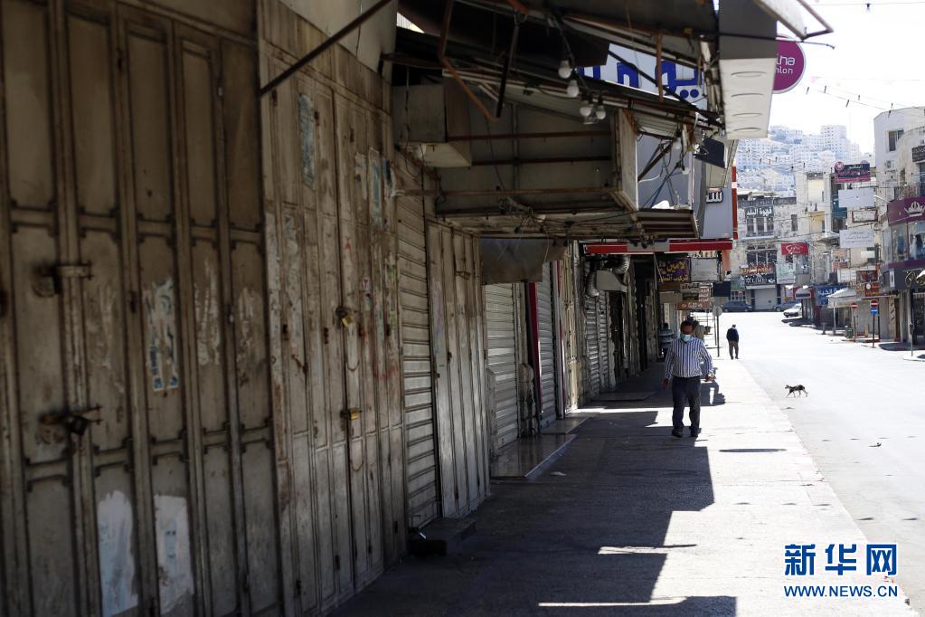 5月18日,一名男子经过约旦河西岸城市纳布卢斯街头关闭的店铺。