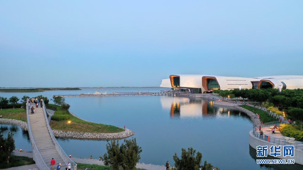 中新天津生态城南湾公园一景(6月5日摄,无人机照片)。新华社记者 李然 摄